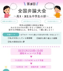 高校1〜2年生&中学生対象の弁論大会があります🎤