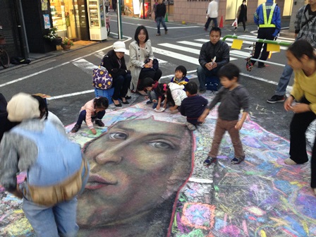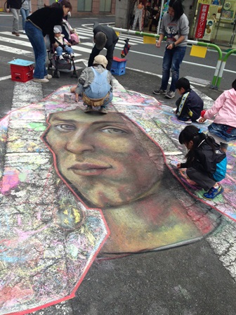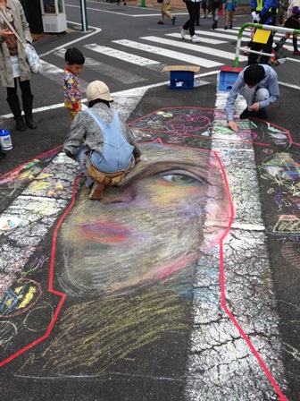 3グループの最終班はチョークアートのお手伝い。