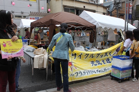 前回のイベントの時に使用したフラッグをリサイクルで作品を作ったフラッグリサイクルプロジェクトに高等学院の生徒も