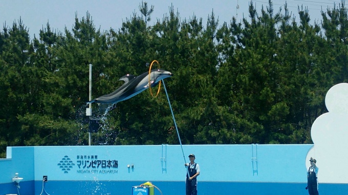 最後はイルカショー!客席まで水しぶきが飛んでくる迫力は見ものです。