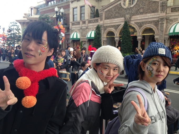みんなで入場し、絶叫系に乗る生徒を待っている間に、顔にペイント♪♪ エルモ、キティーちゃん、スヌーピー♡