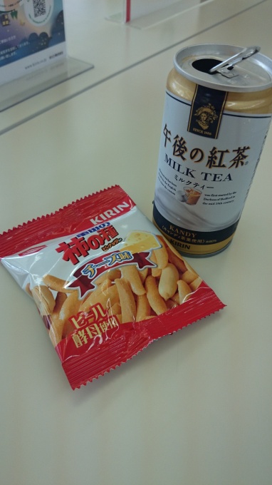 最後に、キリン製品の試飲コーナーにてソフトドリンクと、工場限定の柿の種(チーズ味)をいただきました♪