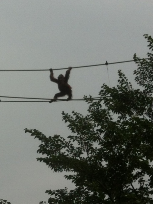 それから運良く母と子のオランウータンのスカイウォークも見られたのです。みんな上を見上げてカメラをパシャパシャ。