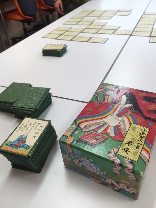 一通り解説を聞いた後は、先生の読み上げで百人一首をやりました。