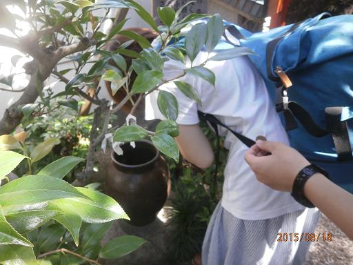生徒たちは、寺田屋の占い購入していました。庭にある水の入った壺に、占いの紙を浮かべ、硬貨をのせて占うそうです。早く沈めば願いが叶うのだとか^^
