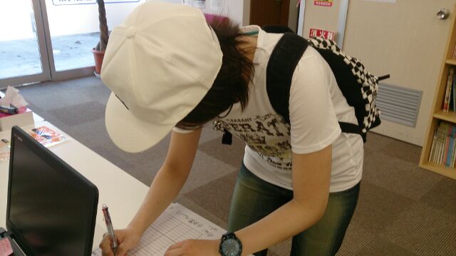登校したら、まずは、名前・登校時間を記入します。