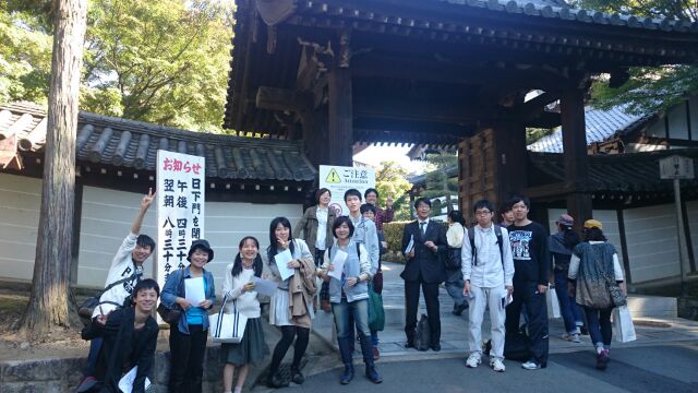 歴史や建築の話をして境内を案内し、通天橋や枯山水の庭の美しい眺めを堪能してもらいました。