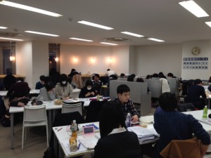 教室内も込み合って、にぎやかだけれども、やっぱりピリピリしてるかな…?