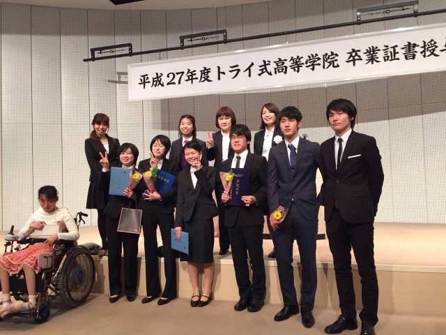 茨木キャンパスでは、3名の生徒が卒業していきました。真新しいスーツを着た生徒たちは、いつもと雰囲気が違い少し大人っぽく見えました。みんなとても晴れやかな表情で無事に卒業することができました。