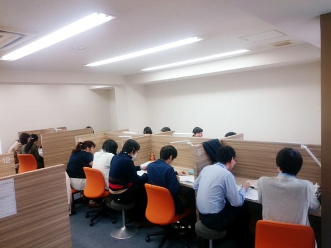 教室の中は個別ブースと自習スペースに分かれ、授業はこのようにブース内で行います。