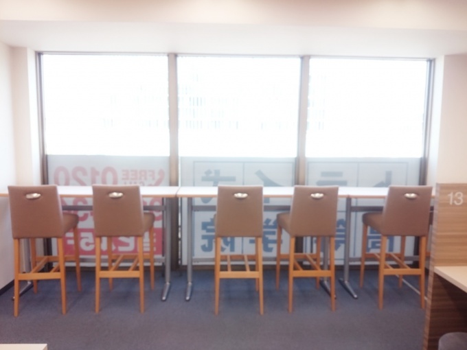 こちらは「カフェ席」。晴れた日は外の景色がこんな風に見えて、ぼーっと考えごとをするには良いスペースです♪