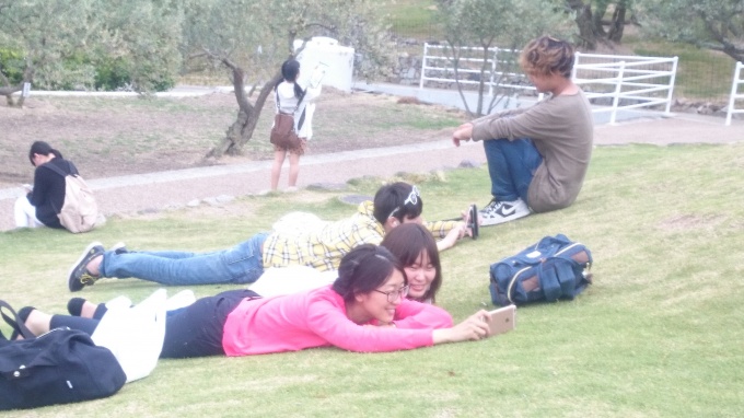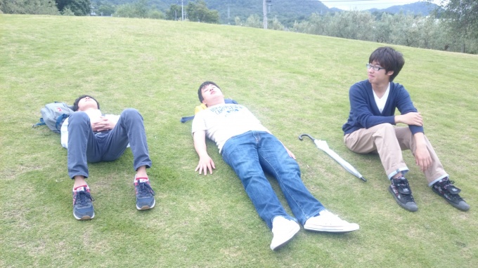 心地良い風が吹く「ギリシャ風車」の周りに広がる芝生に寝転がって、みんなのんびり、ゆったり過ごしました。
