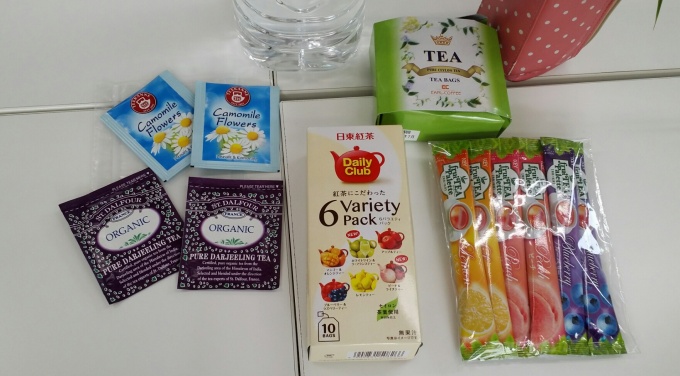 カモミール、オーガニックティー、セイロン、マンゴー&ピーチ、アップル、白ぶどう、ベリーミックス、レモンティー などなど