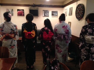 浴衣イベントは今年で2年目です。昨年も参加した人はもう手順が分かっているので、説明を待つことなく上手に着付けていました。今年初めて参加した人もいろいろ試行錯誤を繰り返して最後にはうまく着付けられました。また、今回は生徒さんの小学生の妹さんも参加してくれたので、かわいい蝶々のような帯結びもしてみました。リバーシブルの帯の生徒さんは、両方の色が出るよう工夫した帯結びにしました。昨年より人数も増え、おび結びのバリエーションもできてよかったです。