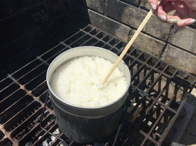 飯盒班は、「どうやったら美味しくご飯ができるのだろう」「どうやって米を量ればいいのだろう」と皆で考え、