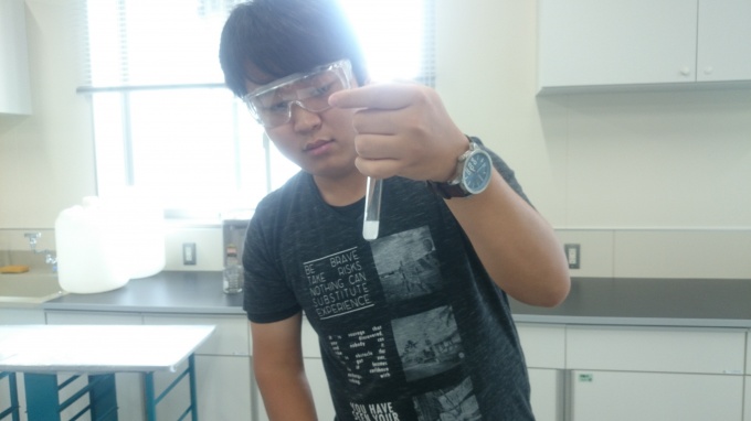 実験会場は今年できたばかりのきれいで新しい校舎。教室は真新しいにおいでした~(゜¨゜)