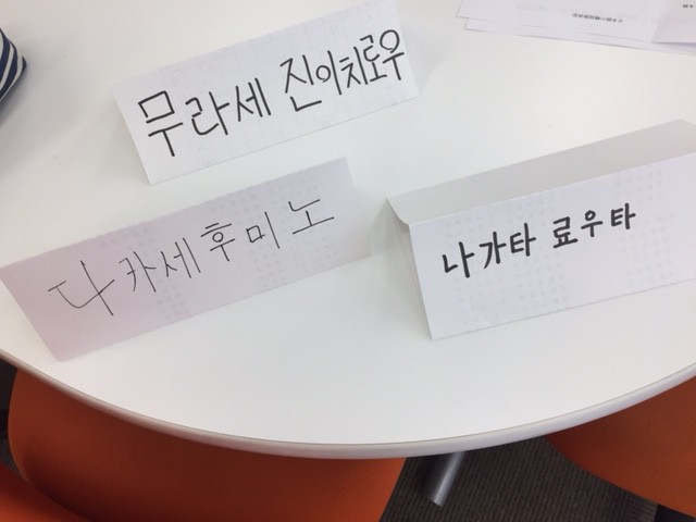 自分の名前を韓国語で書いてみたり、韓国語の挨拶を習ったり・・・