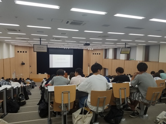 実際に講義をしている大きな教室にも入らせて頂き、授業の雰囲気を見ることができました!