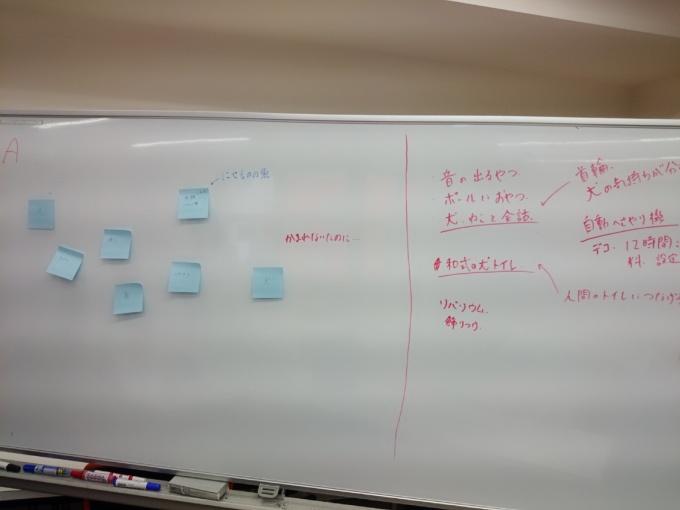 「ペット用品店の企画部員として新しい商品を考える」といったテーマに対してグループでディスカッションし、制限時間内に答えを導き出します。