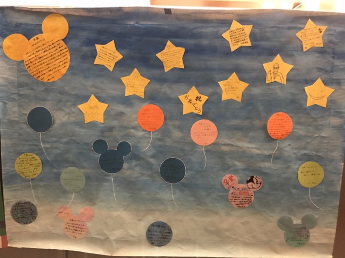 当日は、お菓子を食べながらこれまでのキャンパスでの生活を振り返るスライドショーを流したり、
