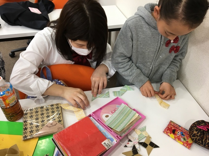 本日は講師のお子さんが遊びに来てくれたので、勉強の合間に皆で童心にかえって折り紙!