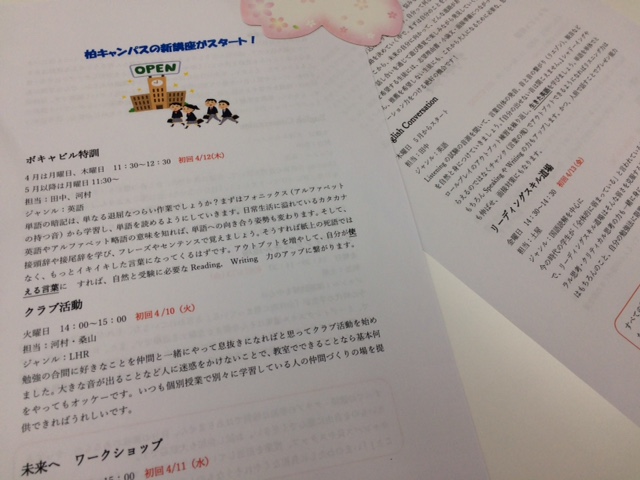 自分に今何が足りないかな~、何が面白そうかな~、と担当の先生とじっくり相談して、お試しで構いませんので参加してくださいね。詳しくは配布のパンフレットを見てください。