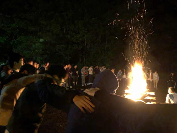 着火役の5名が火を灯しキャンプファイヤースタート。
