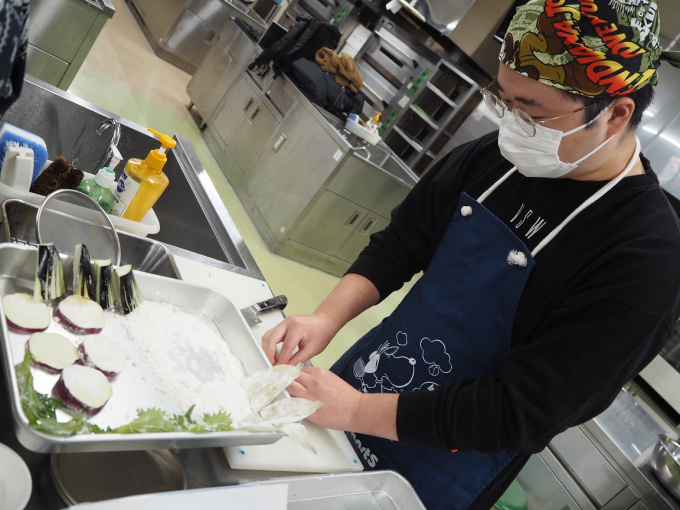 キャンパスから歩いて約15分、西日本調理製菓専門学校の先生方にご協力をいただき、今年度は天丼をつくりましたo(^∀^)o♪♪