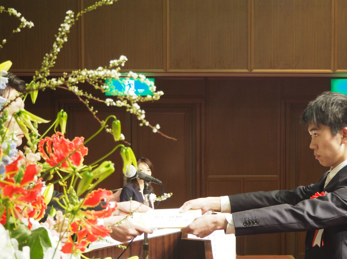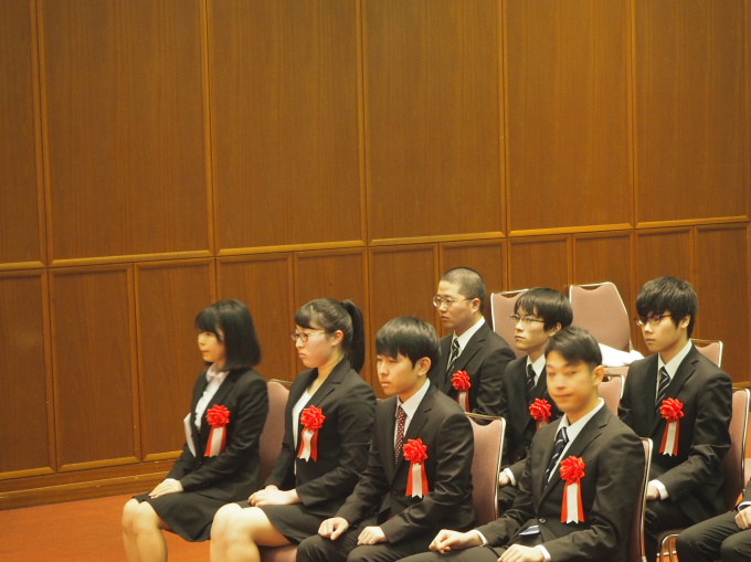 リハーサルを終えた卒業生の皆さんが入場し、厳かな雰囲気の中、一人ずつ卒業証書を授与されました。