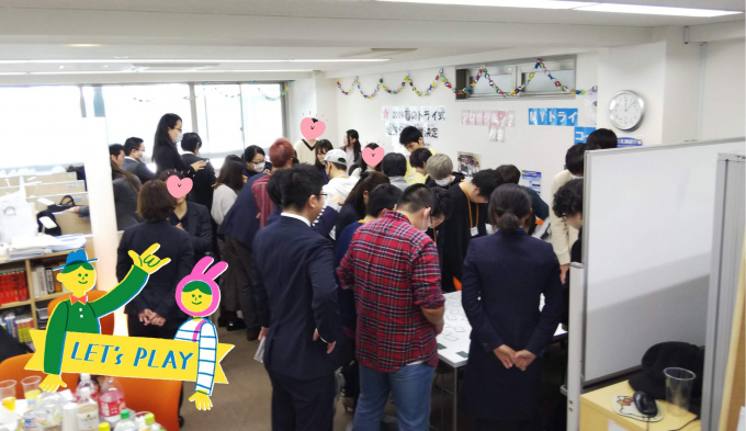 立川・国分寺・所沢・府中キャンパス合同での開催でした。他キャンパスの生徒同士でも交流している様子が伺えました。立川キャンパスにこんなに人が集まるとは、驚きです。