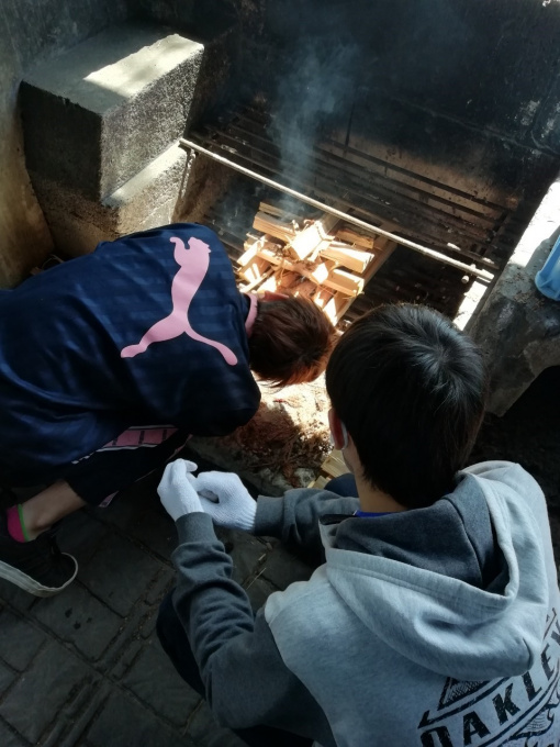 まずは火をおこす係と野菜カット係で分担して