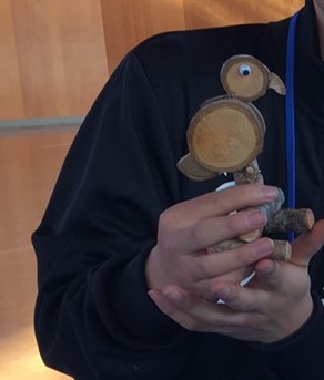 こんな感じで木の破片などを使って個性的な思い思いの作品が出来上がりました。