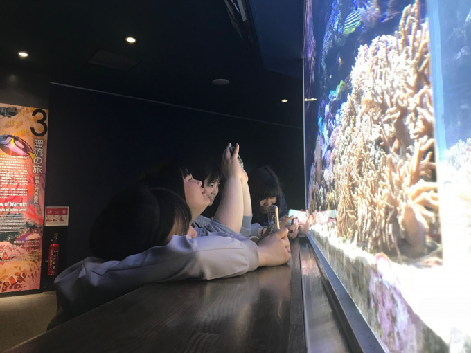 「マリンピアでとった写真を今日、用事で来ることができなかった生徒達にも見せてあげて感想を共有したいと思います。」