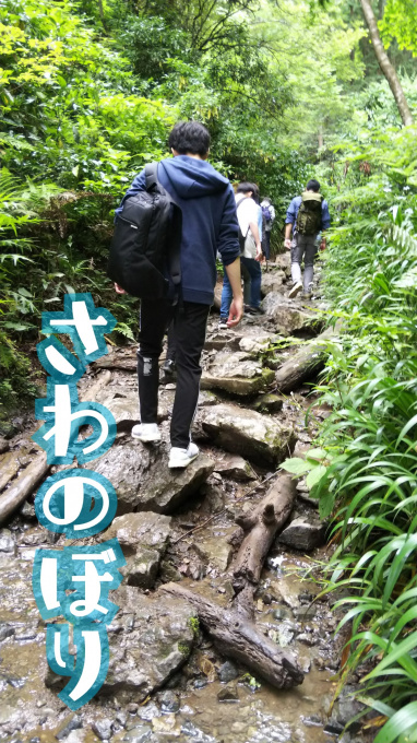 登りは6号路グループと1号路グループに分かれ、私は6号路グループと一緒に登りました。舗装されていない山道が続き、足をとられないように必死でした。生徒の中にはお話ししながら歩く子もいて、みんなの空気を明るくしてくれました。6号路の難所は沢登りと、頂上付近の階段です。階段は一段一段の幅が広いそして高い!太ももがぷるぷるしてきます。