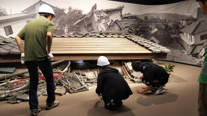 震度7の揺れを体験しました。地震が起きる、とわかっているからすぐにテーブルの下に潜り込めます。しかし普段の生活を送っている中で自身が起きたらどうでしょう?素早く身の安全を守る行動ができるでしょうか?教室にいるときに地震が起こったらどうするのか、どこに避難するのか、日頃から準備しておく必要がありますね。