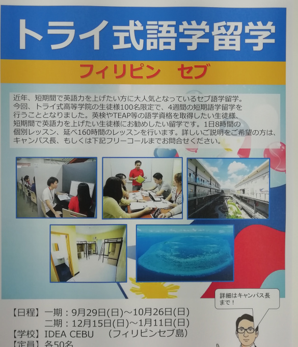 トライ式高等学院では、留学のプログラムがあります。