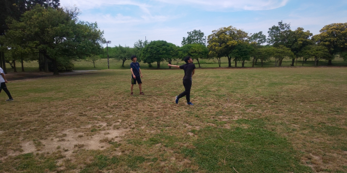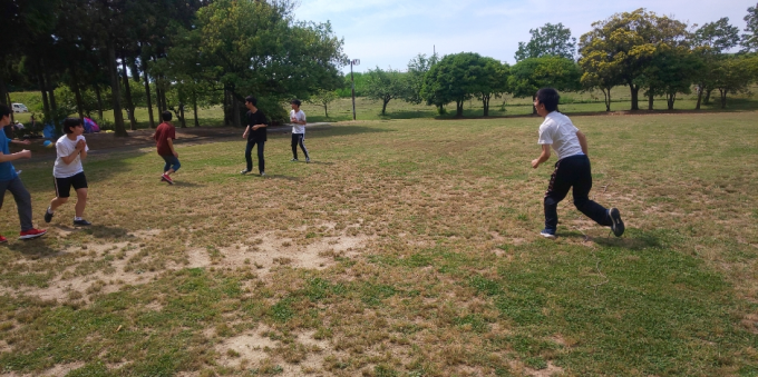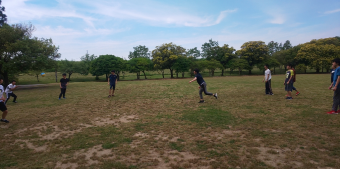 はじめにドロケーを行いましたが、公園の広さがどれくらい広いかが把握できていなかった様子で生徒たちも「どこまで行っていいのか?」という状況になり、疲れて帰ってくることがしばしば・・・