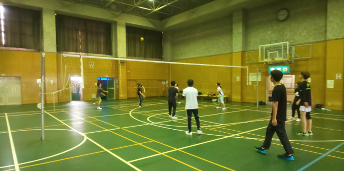 この日は、バレーを以前やっていたという卒業生も来てくれ、部員の中でもバレー経験者が1名いたため、その2名から手取り足取り教わり、練習をしてから試合を実施。