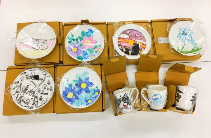 絵付けをしたお皿やマグカップは後日クラフトセンターで焼成され、焼きあがった作品がキャンパスに届きました。