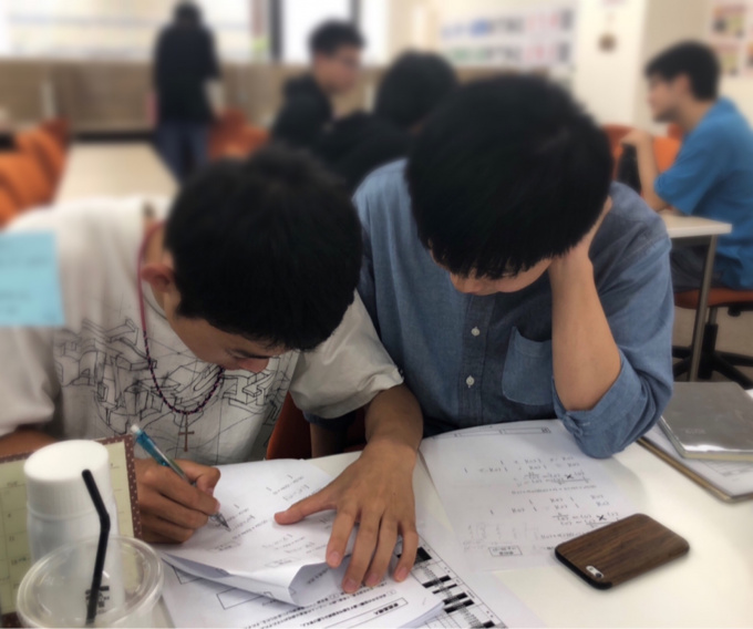 岐阜キャンパスでは、黙々と自分でレポートをこなす生徒もいれば、授業で先生に教わりながらレポートに取り組む生徒もいれば、お友達と教えあいながらレポートに取り組む生徒もいます!(^^)