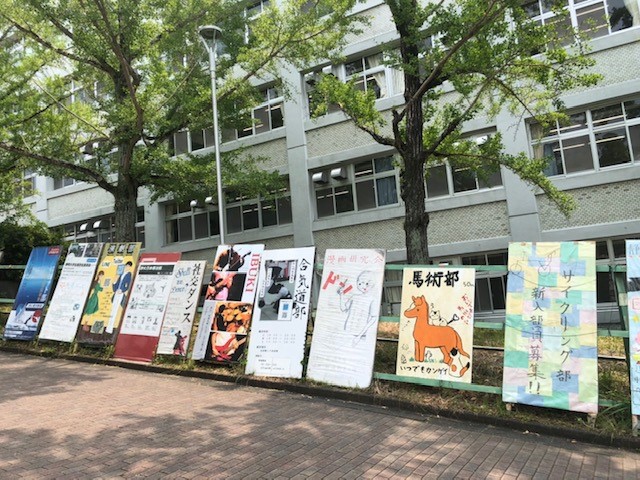 ずらりと並ぶのは各部活・サークルの立て看板!