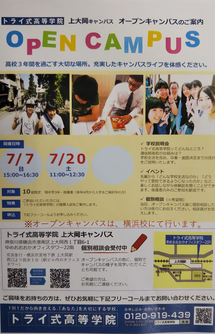 トライ式高等学院では7月にオープンキャンパスを行います。