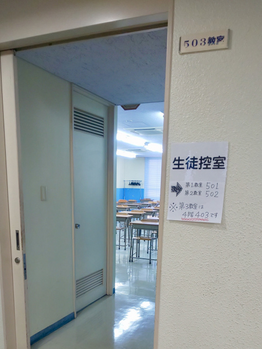 授業がない時間帯は、基本的には上の写真の『生徒控室』の中で待機します。(真面目に勉強に取り組む生徒もいれば、待機時間が長すぎて仮眠をしている生徒もいました!)