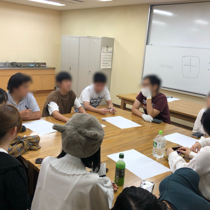 今回は、姫路キャンパスで芸術を教えてくれている講師の方にアート体験としてキャンパスの生徒を集めて簡単な授業をしていただきました。