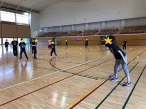 ドッチボールのボールを、フリスビーに変えた競技です!なかなかフリスビーの軌道が読めず、