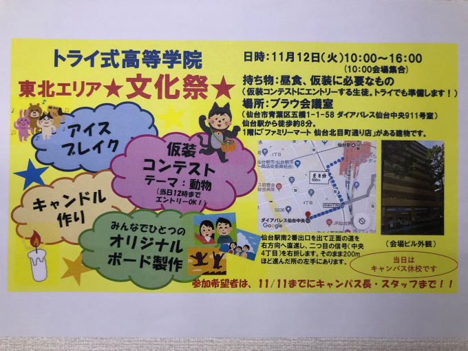 ★トライ式高等学院東北エリア 文化祭のお知らせ★