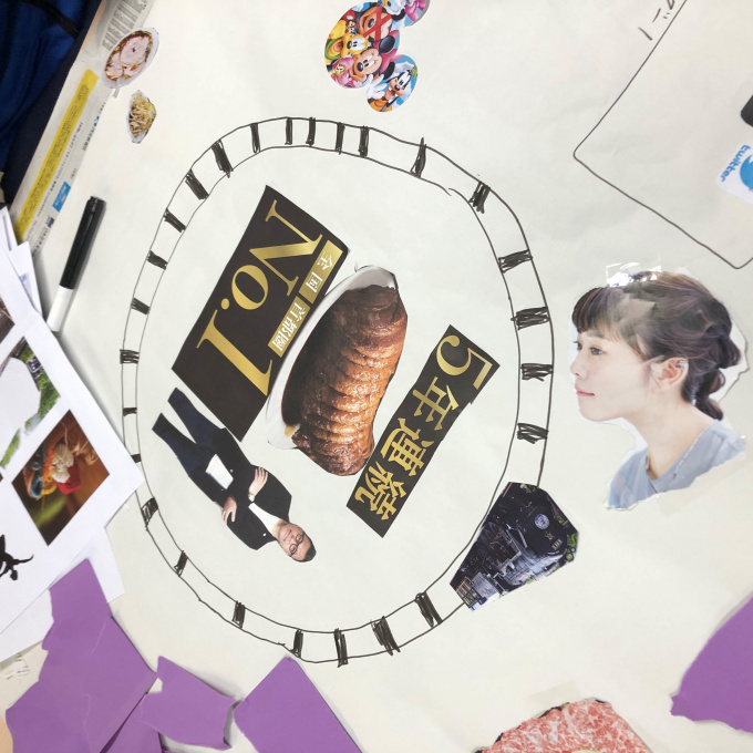 模造紙にグループで自由に雑誌の切り抜きやプリントを貼り付けていきました!