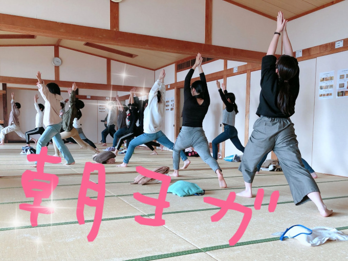 「2日目朝はヨガをしました。普段運動をしていなくても気持ちよく汗を流すことができました。ヨガの最後に横になるのがとても気持ちよかったです。