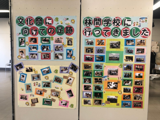 まずは書写や展示会へ向けての準備の様子、林間学校の写真展示です 😉