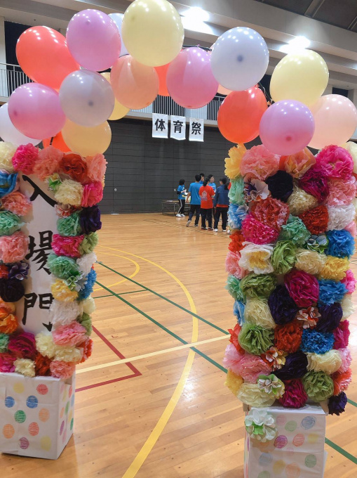 キャンパスの生徒たちと力を合わせて作った入場門です!!